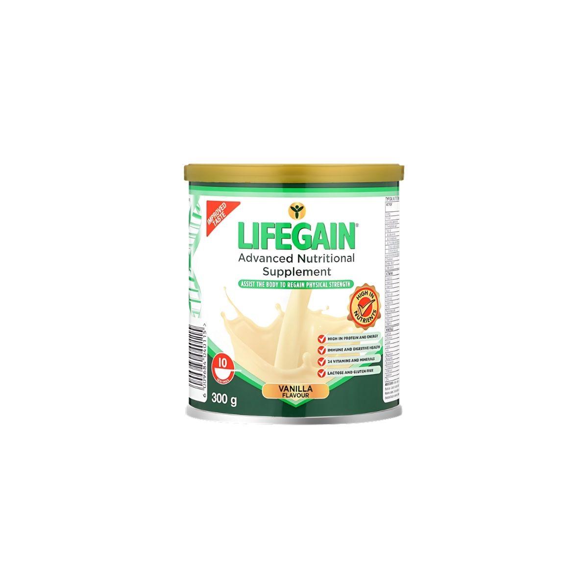 Lifegain Advanced Nutritional Supplement Vanilla 300g is formulated with a unique soy-based blend that is rich in proteins, omega-3 fatty acids, fibre, essential amino acids, vitamins, and minerals. Perfect for helping the body regain physical strength after injury or illness. Contains no added sugar and is gluten, lactose, cholesterol, and GMO soy free